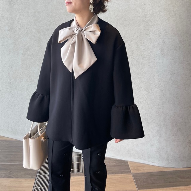 *留め具ホックは着用時外れにくいもの採用しております。閉める際は最後までホックを入れ込んでください。 ■FREEサイズは下記ページにてご注文をお願い致します⇓ https://keepmycloset.buyshop.jp/items/53681806 インスタで着用動画が見れます^_^ ⇩⇩タップすると見れます⇩⇩ FREEサイズ⇒https://www.instagram.com/p/CjCibs4hpuR/?hl=ja 160cm 49kgスタッフ着比べ⇒https://www.instagram.com/p/CjPWv7phAg1/?hl=ja Sサイズ⇒https://www.instagram.com/p/CjSAPuKIatN/?hl=ja ■今シーズンは"大人の可愛さとスタイリッシュさを大切に" 大人カジュアルはもちろん、フォーマルなアイテムとも相性がとても良い綺麗シルエットのコート。 お袖は繊細なギャザーとフレア袖デザイン、身頃はゆったりしながらも裾はコクーンシルエットで甘いだけじゃない、ちょっぴりモードなコートに仕上がりました。 フロントのフックは3箇所だけで前を開いても付属品が目立たずすっきりと着れるのも大きなポイントです。 生地は伸縮性がとてもよく、保温性もあるダンボール生地を選びました。 多数あるダンボールニット生地の中でも、レーヨン混の光沢とハリ感のあるものを選びカジュアルとキレイ目見えを叶えます。 また秋冬春と長いシーズンに使えるというのもダンボールニットの良さです。 *インスタアカウント(@keep_my_closet)で着用コーデや着心地など詳しくアップしています! ぜひ1度ご覧くださいね。 ■Keep my closeオリジナルならではの推しポイント⇓ ◎パンツやフラットシューズ、スニーカーで大人カジュアルに!フォーマルアイテムにはさっと羽織るだけで上品なキレイ目見えがキマります! ◎裏地は無くとにかく動きやすいので小さなお子様が一緒でもストレスフリーな着心地。 ◎ご自宅で手洗いが可能だから、汚れてもサッとお手入れができます。 ■柔らかくて軽いダンボールニット生地とは? 表面糸と裏面糸を中糸でつなげて作る生地のことで、段ボールの構造によく似ているためその名前が付きました。 中糸の間に空気を溜めることができるため保温性に優れていてハリがあり毛玉になりにくいうメリットがあります。 コートなどアウターにも使用され、ウールに比べるとお手入れもしやすく気軽に着用ができます! *お品は畳んで発送を致します。その際たたみジワがある際は低温度アイロンをあてて頂く事で解決できます。 *留め具ホックは着用時外れにくいもの採用しております。閉める際は最後までホックを入れ込んでください。 *手洗い表記はなっておりますが、こまめに洗いすぎますとダメージも多くなる可能性がございます。シーズン終わりや汚れが気になる時のポイント洗いをオススメします。 【活躍シーン】 フォーマル・卒業式・入学式・七五三・説明会・発表会・結婚式・通勤・お出かけ・学校行事・お食事会・説明会・通勤・カジュアル ■カラーはブラック ■着用モデル148センチ ■小柄Sサイズ ●Sサイズ⇒身丈95cm・肩幅47cm・身頃周り108cm・袖丈46cm (Sは145cm~155cm前後の小柄さん向けサイズになります) ●FREEサイズ⇒着丈106cm・肩幅48cm・身頃周り114cm・袖丈48cm (比較的ゆったりした作りの為、M~LLの方まで着用できます) ・重さ S⇒約810g・FREE⇒約920g ・素材 レーヨン72%・ナイロン20%・ポリウレタン8% ・裏地 なし ・伸縮性 あり ・ポケット なし ・前フック あり ※お洗濯について 洗濯又はクリーニングの際は、裏返してネットを使用して下さい。 多少色落ちしますので、洗濯又はクリーニングの際、淡色のものとは別にお洗い下さい。 洗濯後は脱水してすぐに干して下さい。濡れたまま放置しますと色泣きや他の衣類などに色移りすることがあります。 水洗い後の乾燥機のご使用は避け、自然乾燥して下さい。