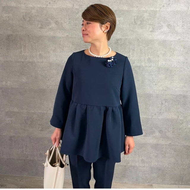 小柄S■体系カバー優秀♡普段~卒入式にも♡上品ペプラムトップス 紺■卒業式 入学式 フォーマル 冠婚葬祭 KMC-728 536439