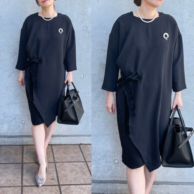 フォーマルSALE開催!今が一番お得 12/18〜入学式・卒業式・謝恩会に使える大人フォーマルが 最大5,000円OFF! セレモニー直前は売り切れ必至。迷っているなら、今が買いどきです。 ■Mサイズは下記ページにてご注文をお願い致します⇓ ・Mサイズはこちら⇒https://keepmycloset.buyshop.jp/items/33061012 インスタで着用動画が見れます^_^ ⇩⇩タップすると見れます⇩⇩ https://www.instagram.com/p/CVj40ahqG1p/?hl=ja お色違いネイビーはこちら⇒https://keepmycloset.buyshop.jp/items/33060651 ■動きやすい上品シルエット 上半身はゆったりとしたシルエットで動きやすく仕上げております。 お出かけの時に窮屈なお洋服はそれだけで疲れてしまいますよね。 ゆったりだけどすっきり見えるように着痩せを重視してストンとした落ち感をもたせました。 着丈はひざ下丈なのでいろいろなシーンで活躍してくれます♪ ■シンプルだけと着映えする ウエストリボンは左右どちらでも結べるようにデザインしました。 基本は右側で結ぶデザインにしておりますが、その日の気分や見せたい方向に合わせて変えられます。 シンプルだけど他にはないデザインにするため、胸元タック&切り替えを施し裾周りは少しタイトなシルエットに。 何度も試作を重ねて着心地とシルエットの美しさを出せたワンピースにな仕上がりました。 ■活躍シーン フォーマル 結婚式 卒業式 入学式 学校行事 謝恩会 お出かけ 観劇 お食事会 パーティー お呼ばれ 2次会 ■サイズは小柄さんSsize・M size・L size・XL size・XXL size【サイズ選択ボタンよりお選び下さい】 ■着用モデル163センチ ☆★☆★☆★☆★☆★☆★☆★☆★☆★☆★☆★☆★☆★☆★☆★☆★☆★☆★☆★ 発送について ご入金確認後2~3日以内に行うようにしております。 土日祝は発送をお休みさせて頂きます。 ●Ssize⇒着丈89(cm) 身丈94(cm) 肩幅58.5(cm)袖丈30(cm)身頃周り118(cm)ヒップ100(cm)裾周り90(cm) 低身長用155㎝以下の方にお勧めです ●Msize⇒着丈94(cm) 身丈96(cm) 肩幅59(cm)袖丈35(cm)身頃周り118(cm)ヒップ102(cm)裾周り94(cm) ●Lsize⇒着丈95(cm) 身丈97(cm) 肩幅60(cm)袖丈36(cm)身頃周り120(cm)ヒップ106(cm)裾周り96(cm) ●XLsize⇒着丈99(cm) 身丈102(cm) 肩幅62(cm)袖丈38(cm)身頃周り128(cm)ヒップ116(cm)裾周り102(cm) ●XXLsize⇒着丈100(cm) 身丈104(cm) 肩幅62(cm)袖丈38(cm)身頃周り134(cm)ヒップ118(cm)裾周り104(cm) ・素材 ポリエステル100% ・透け感 なし ・裏地 なし ・伸縮性 なし ・つや感 少しあり ・生地の厚さ しっかり ・ファスナー あり