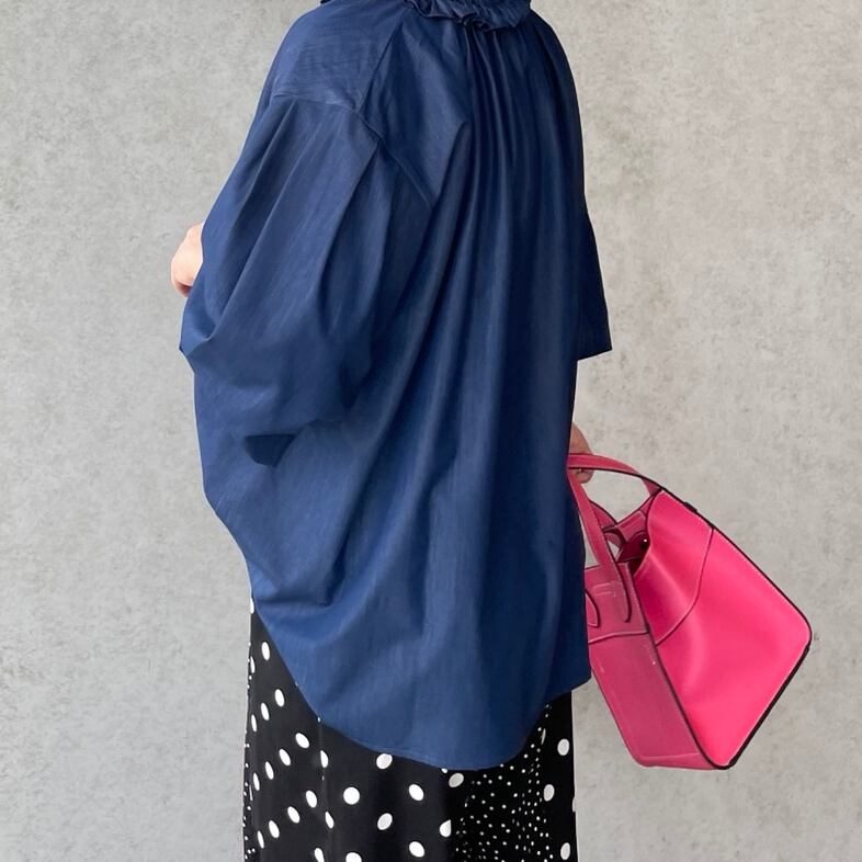 肩や背中の気になる部分は細かいギャザーやタックを入れることで、お肉を拾わず自然な落ち感を。