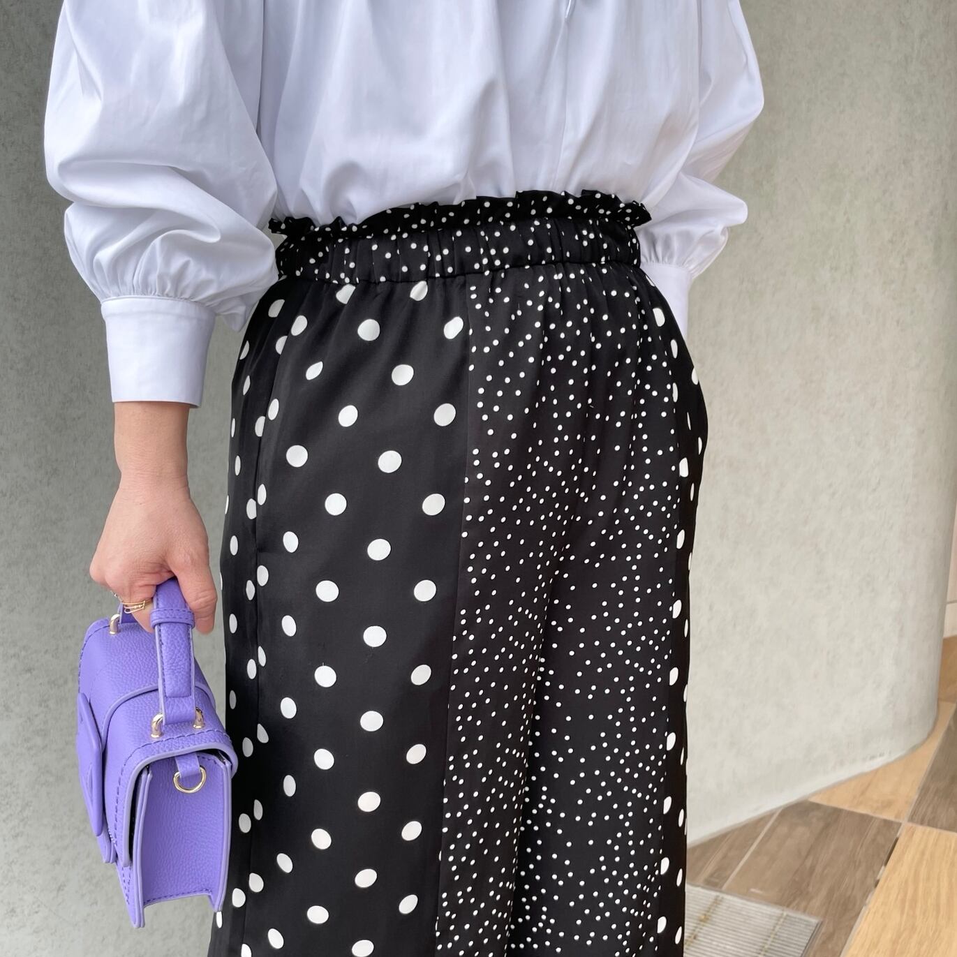 大小2つのドット柄コンビの大人カジュアルゆったりパンツ