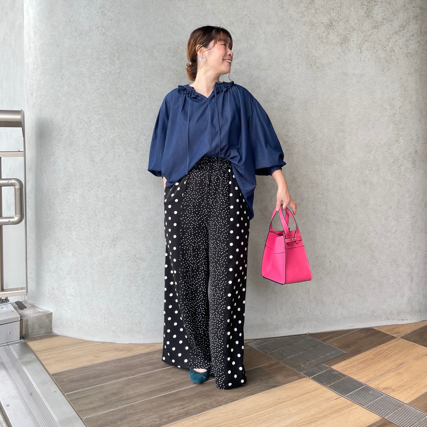 大小2つのドット柄コンビの大人カジュアルゆったりパンツ