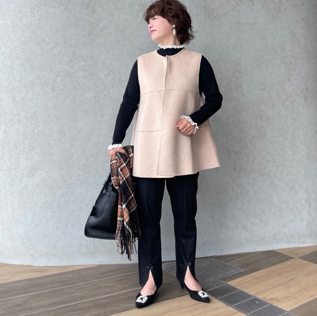 30代・40代・50代・60代の大人女性の味方、ハンドメイドウールリバーシブルジレです。