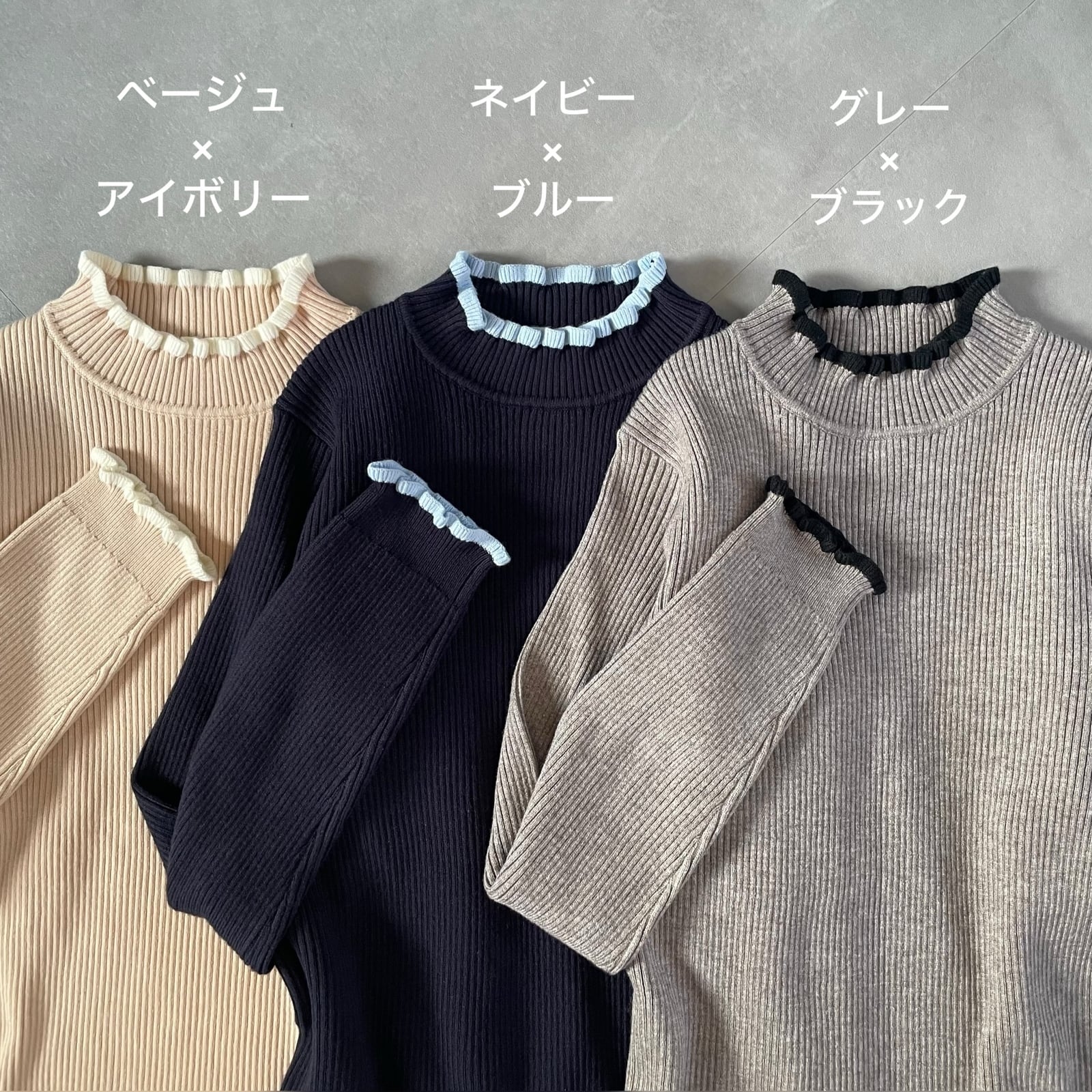 3枚セット 配色リブニット 温活あったか チクチクしない 着痩せトップス 通勤 40代 50代 keep my closet公式通販【 FREE・紺】KMC-759 624904 | keep my closet