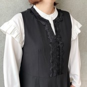 タックとフリルの装飾がお顔まわりをふわっと華やかにしてくれます。