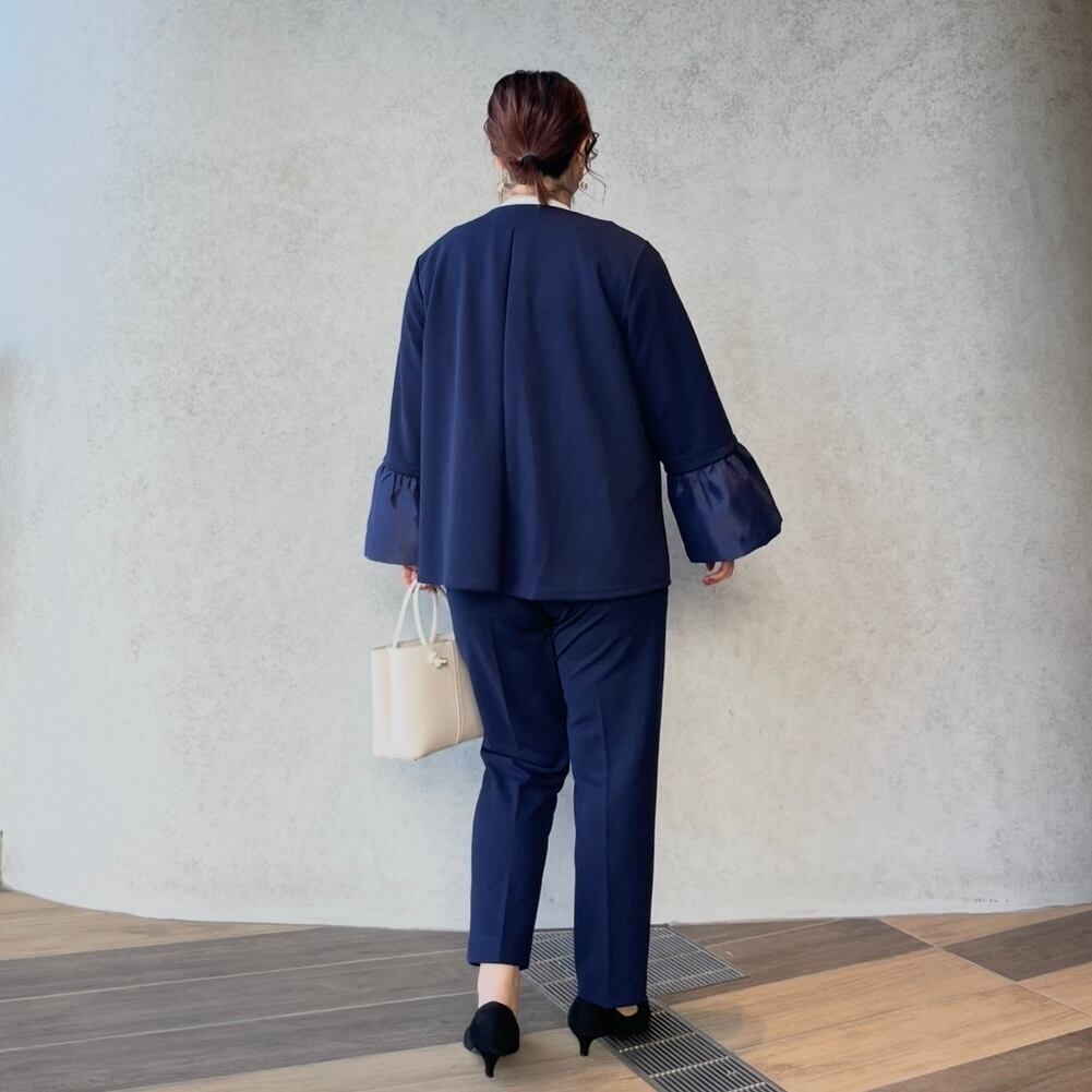 2点セット■卒業入学式 上品ノーカラー2wayゆったり着痩せスーツ 紺【フリー】フォーマル KMC-783 537060