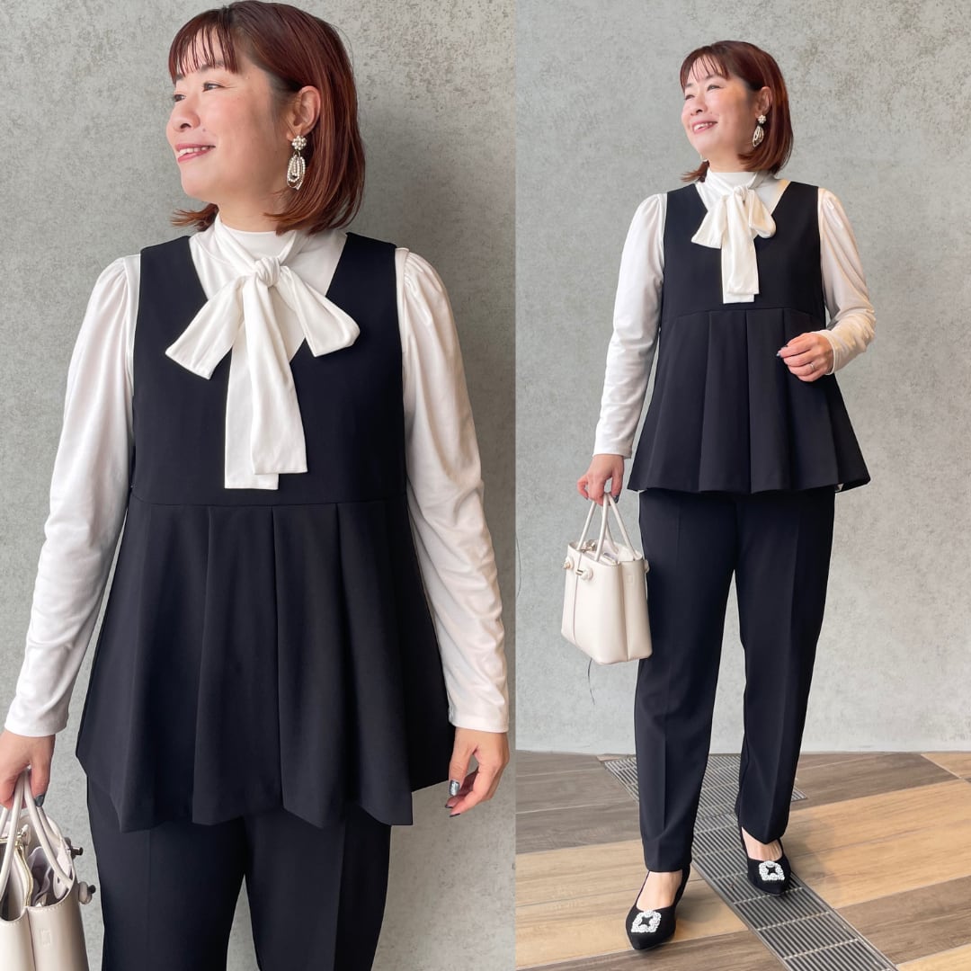 体型カバー・着痩せ・着回し力を兼ね備えた、大人の女性に頼れるセットアップです。
