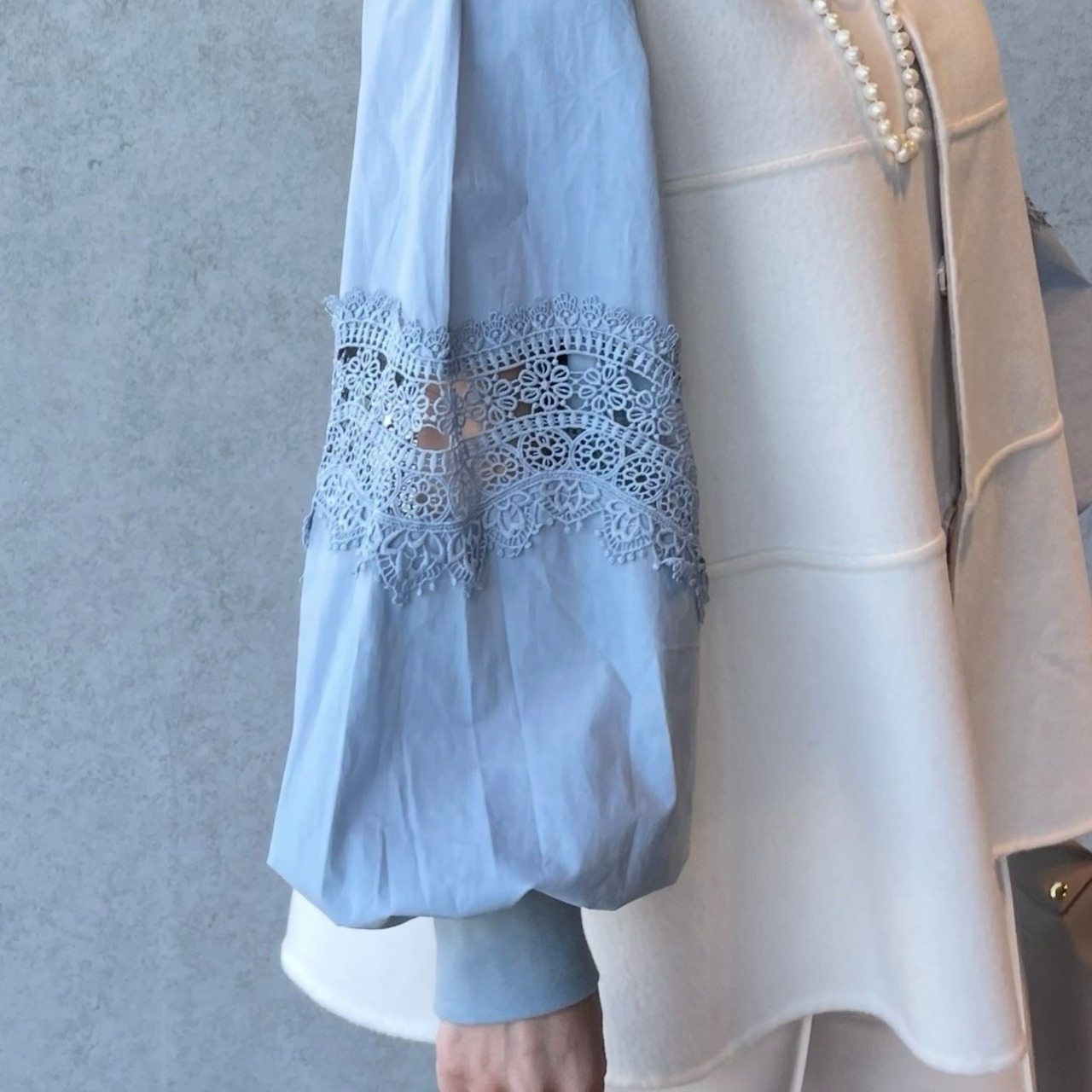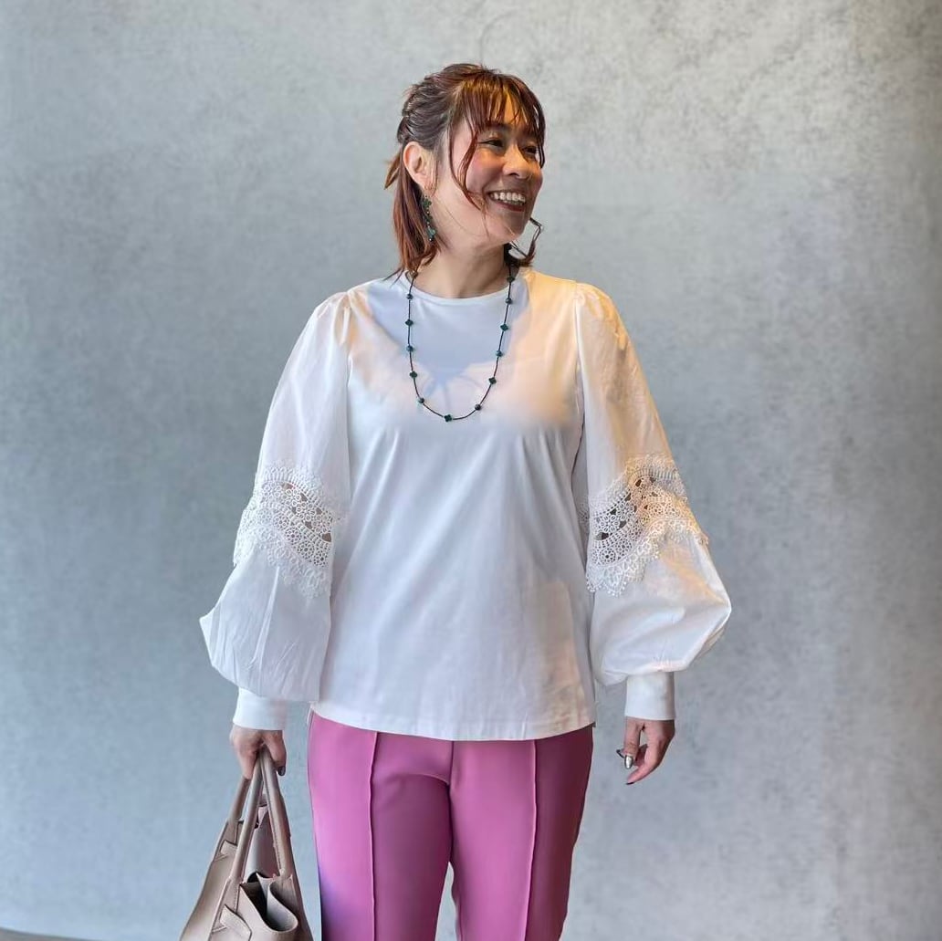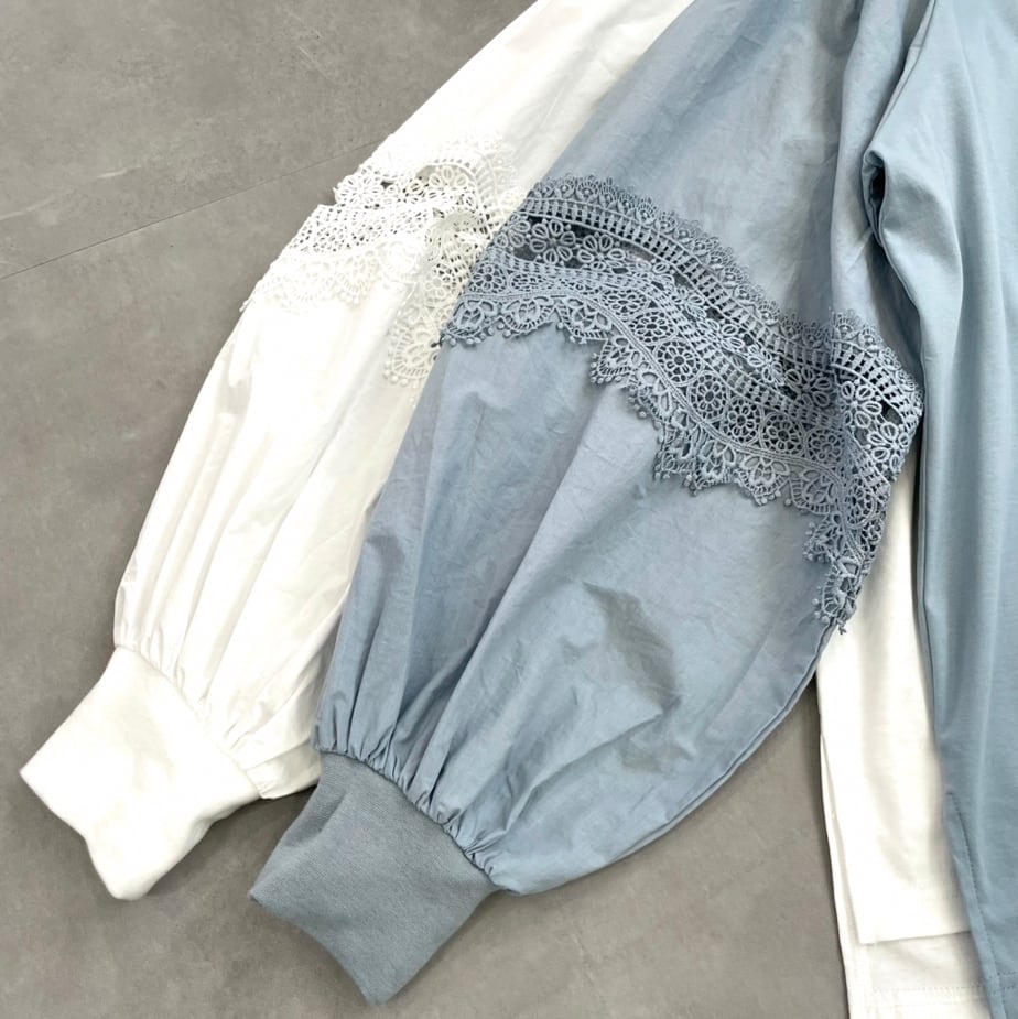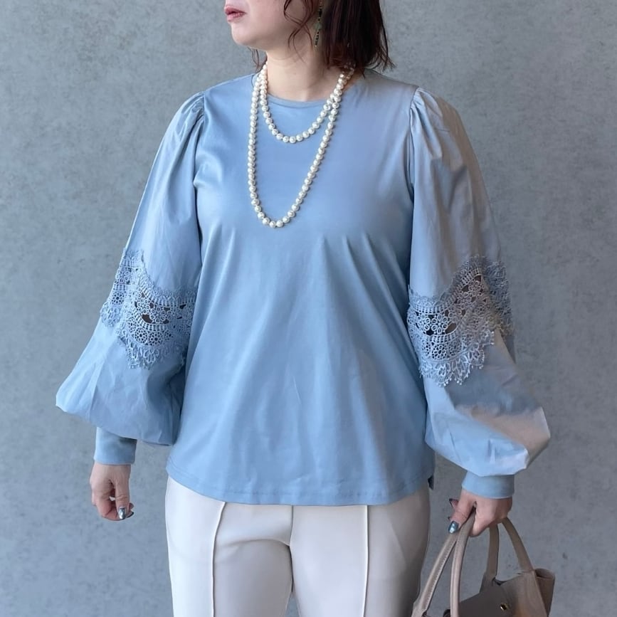 お袖はレースと布帛生地の異素材コンビ、1枚で着るだけでコーデが華やぐ主役トップスです。