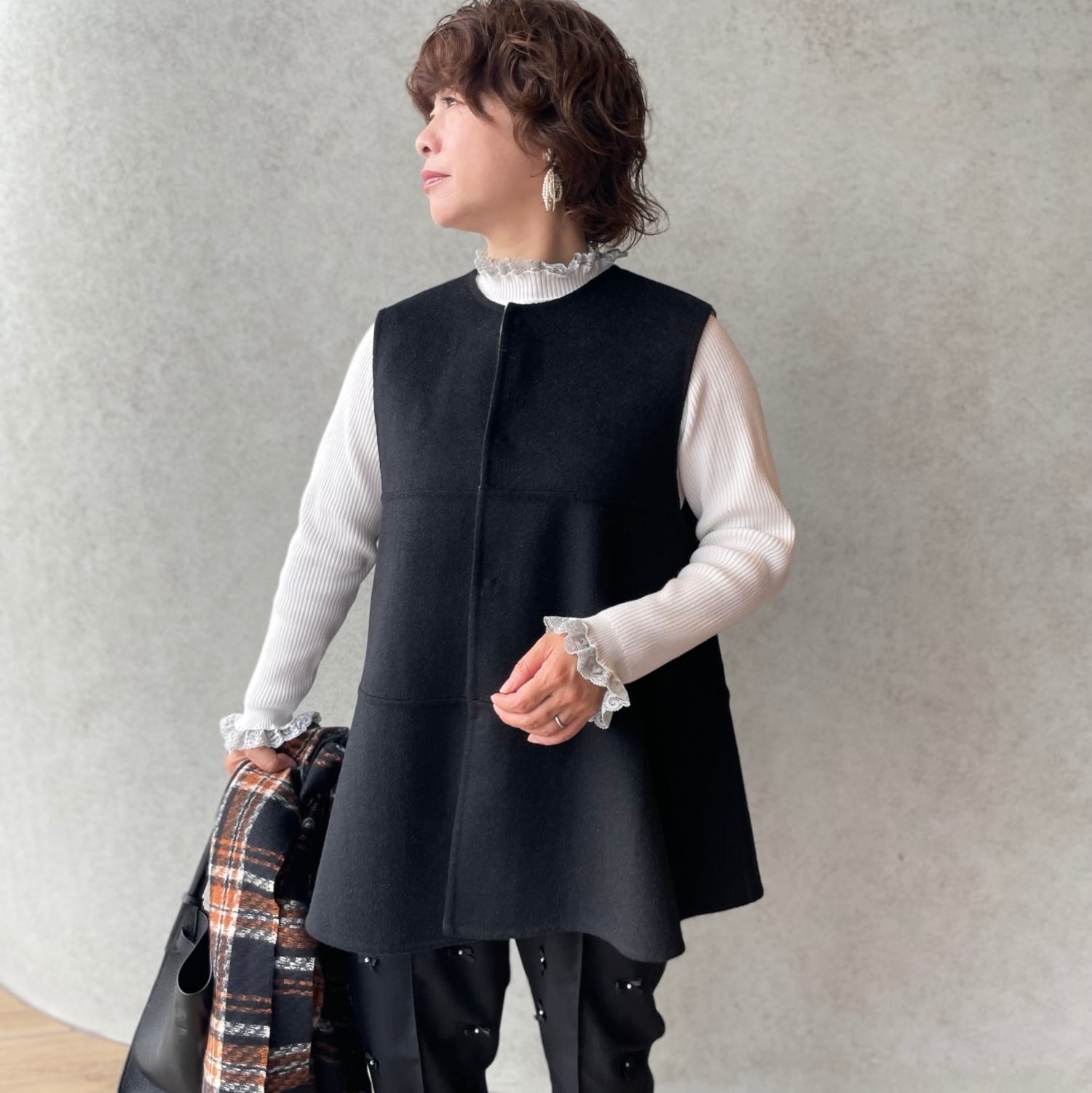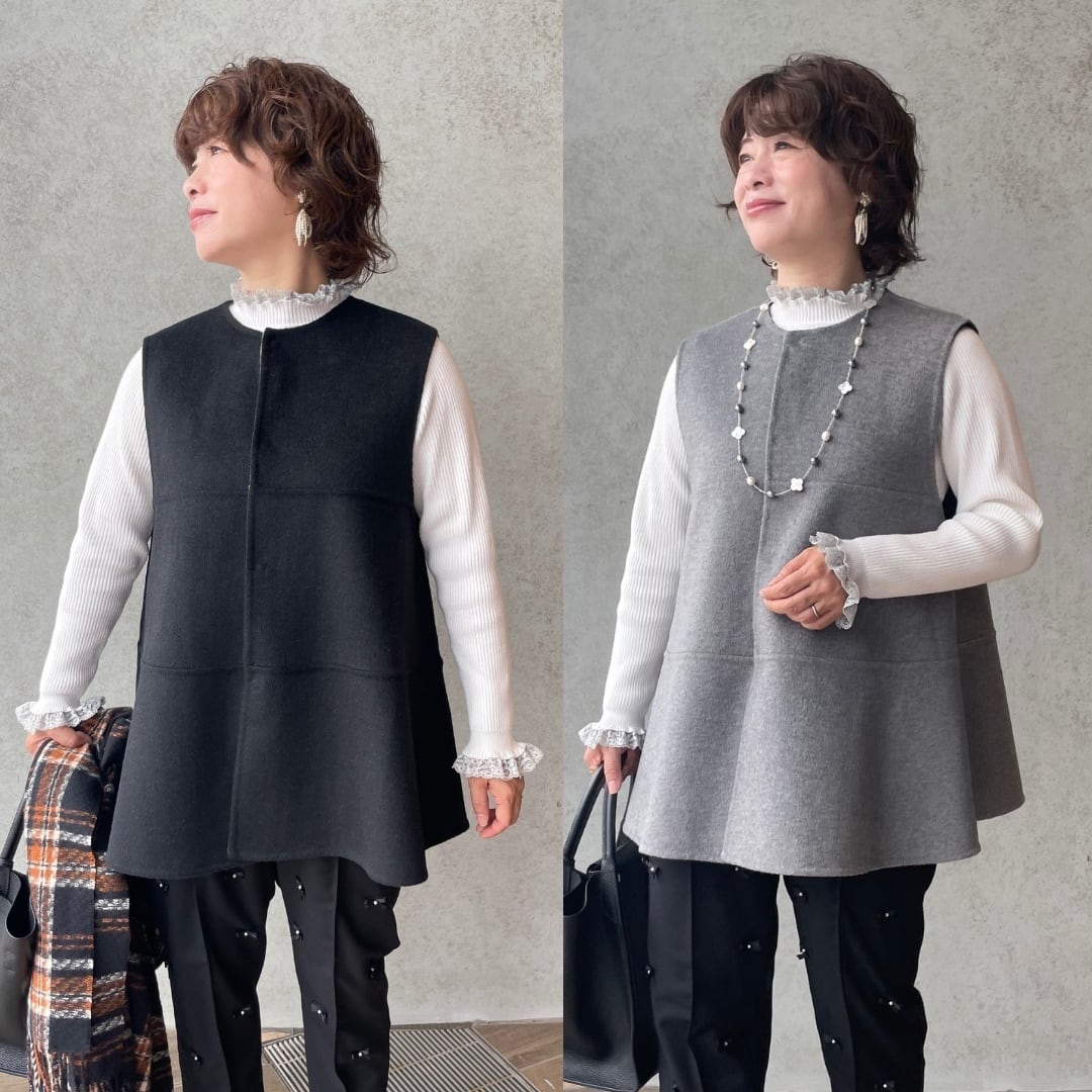 30代・40代・50代・60代の大人女性の味方、ハンドメイドウールリバーシブルジレです。