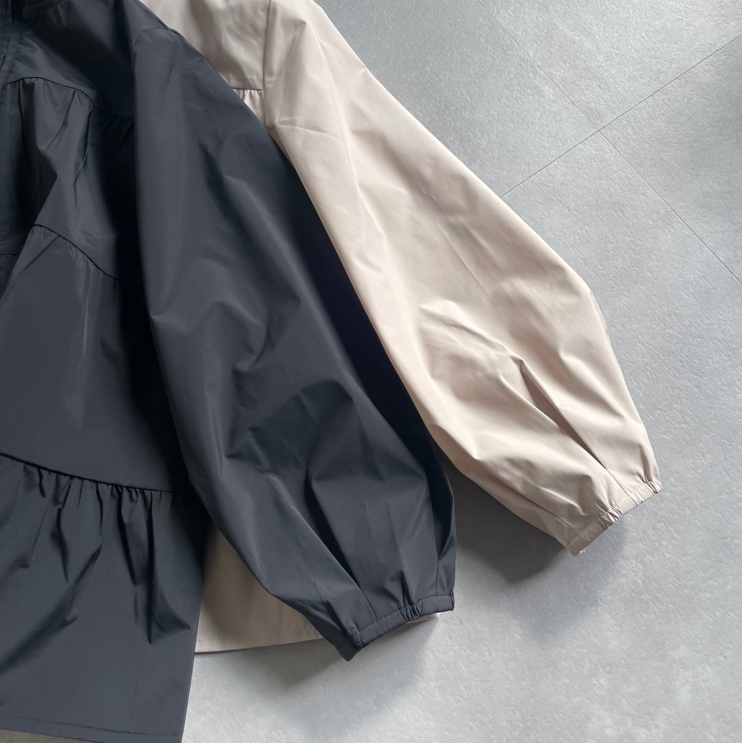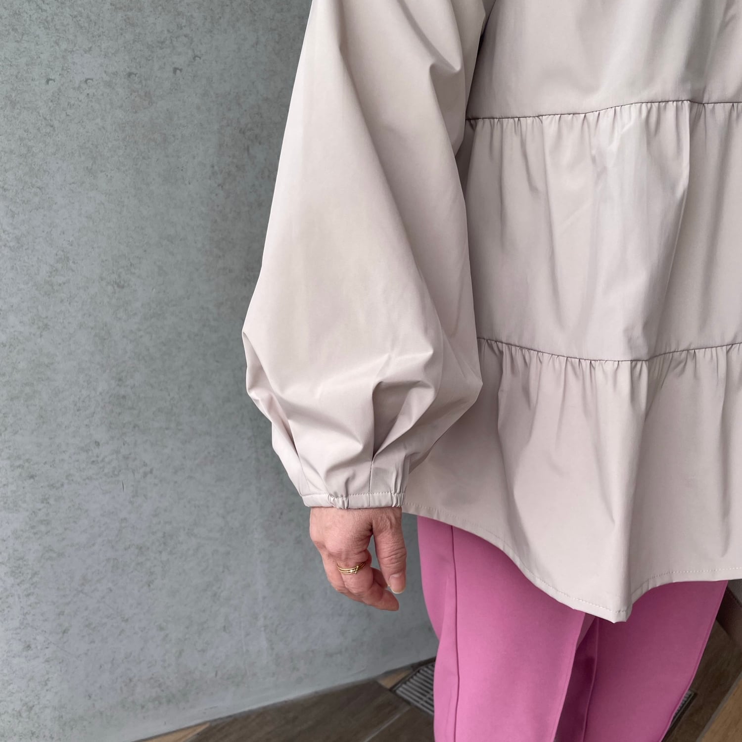 袖口はタック+ゴム仕様で、袖を上げても落ちにくく、動きやすさも◎