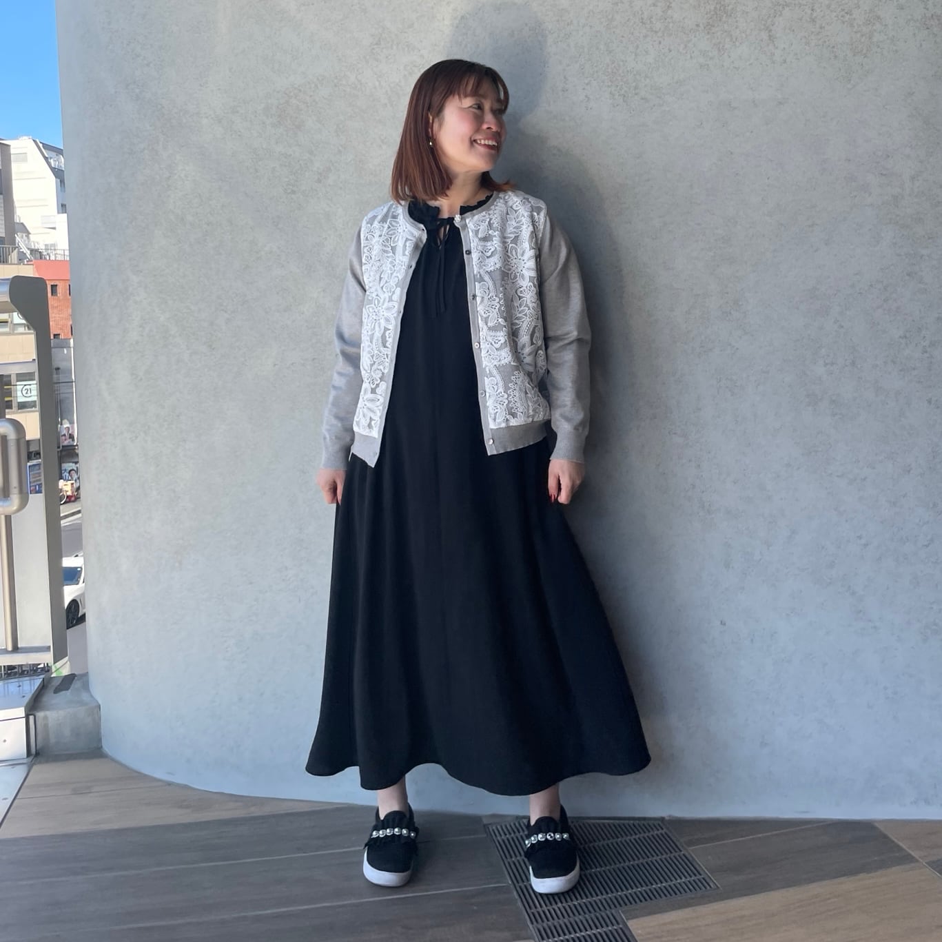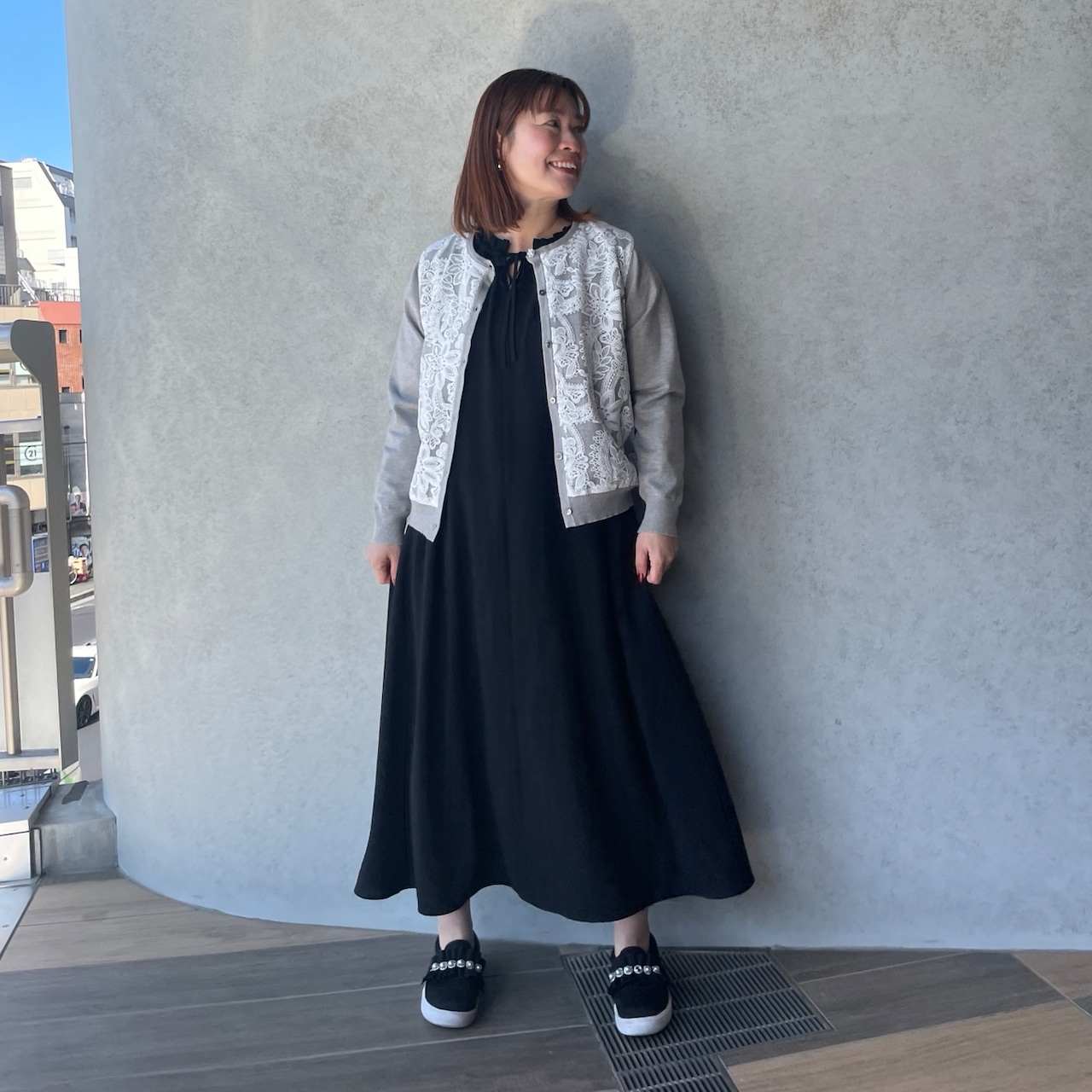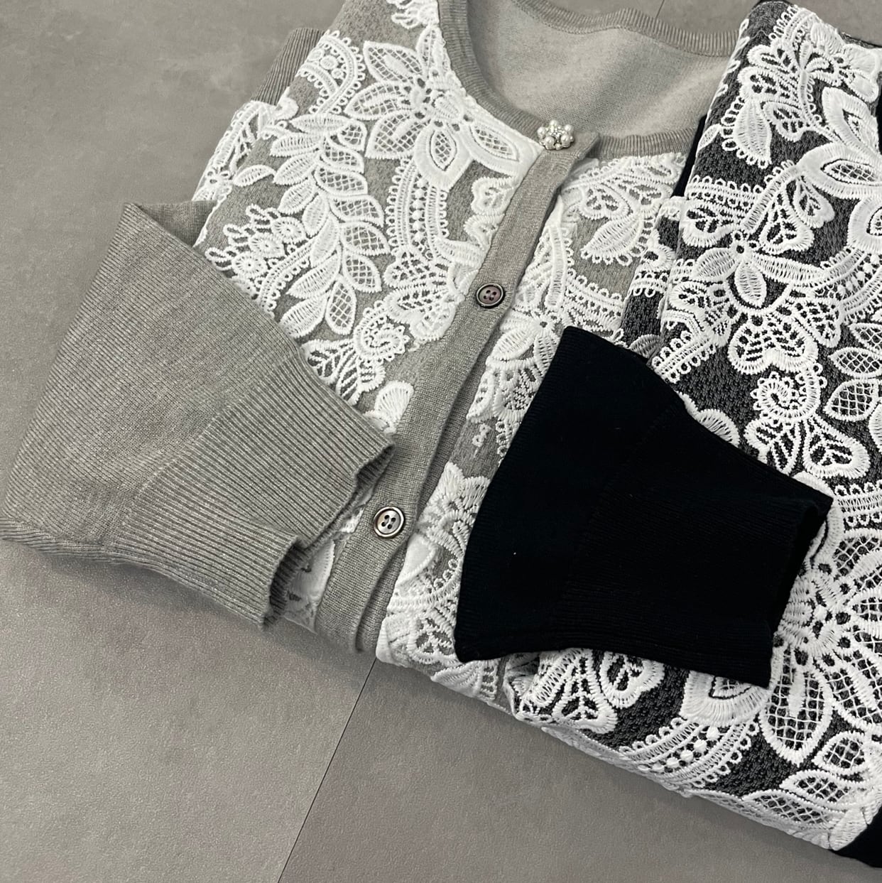 肌触りが心地良いニットと、上品な華やかさのあるレースコンビデザイン。