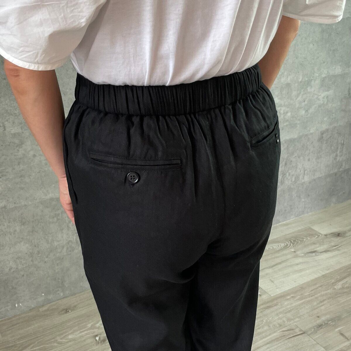 SALE■残り① スラっと脚長シルエット♪ 上品テーパードストレッチ麻リネンパンツ 黒【L】KMC-505 901928