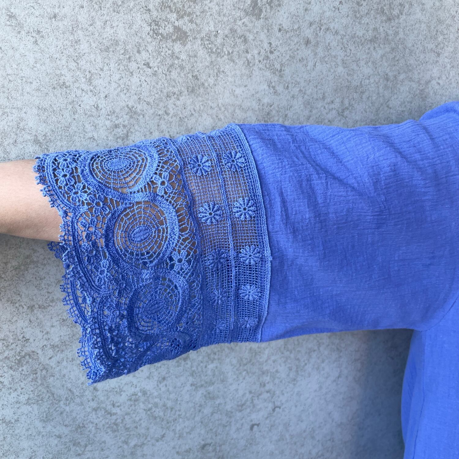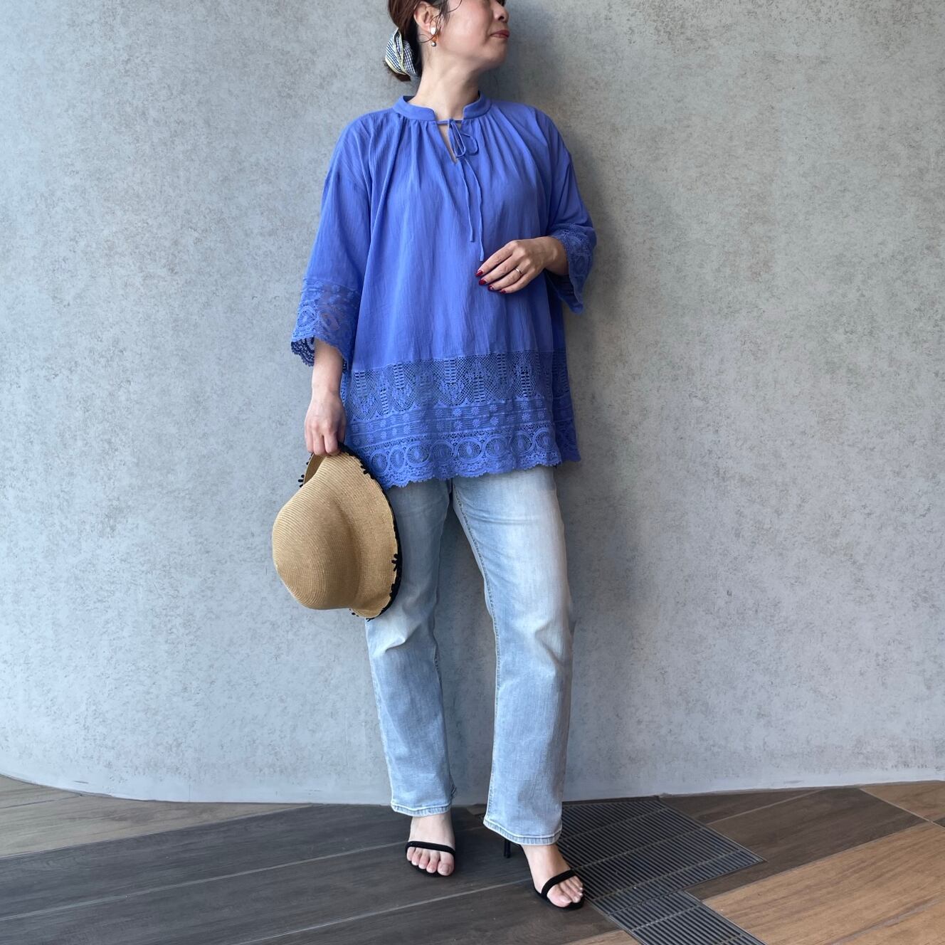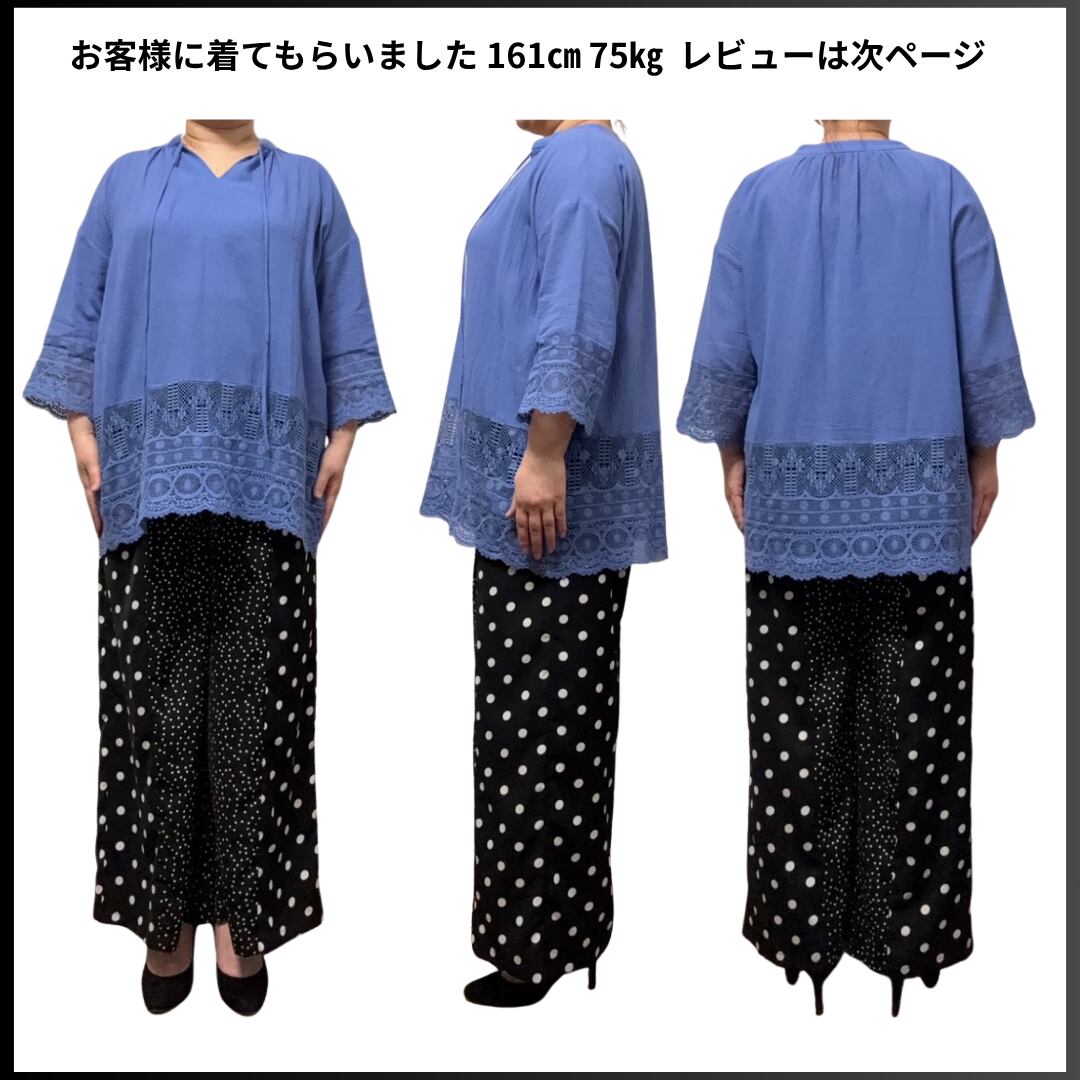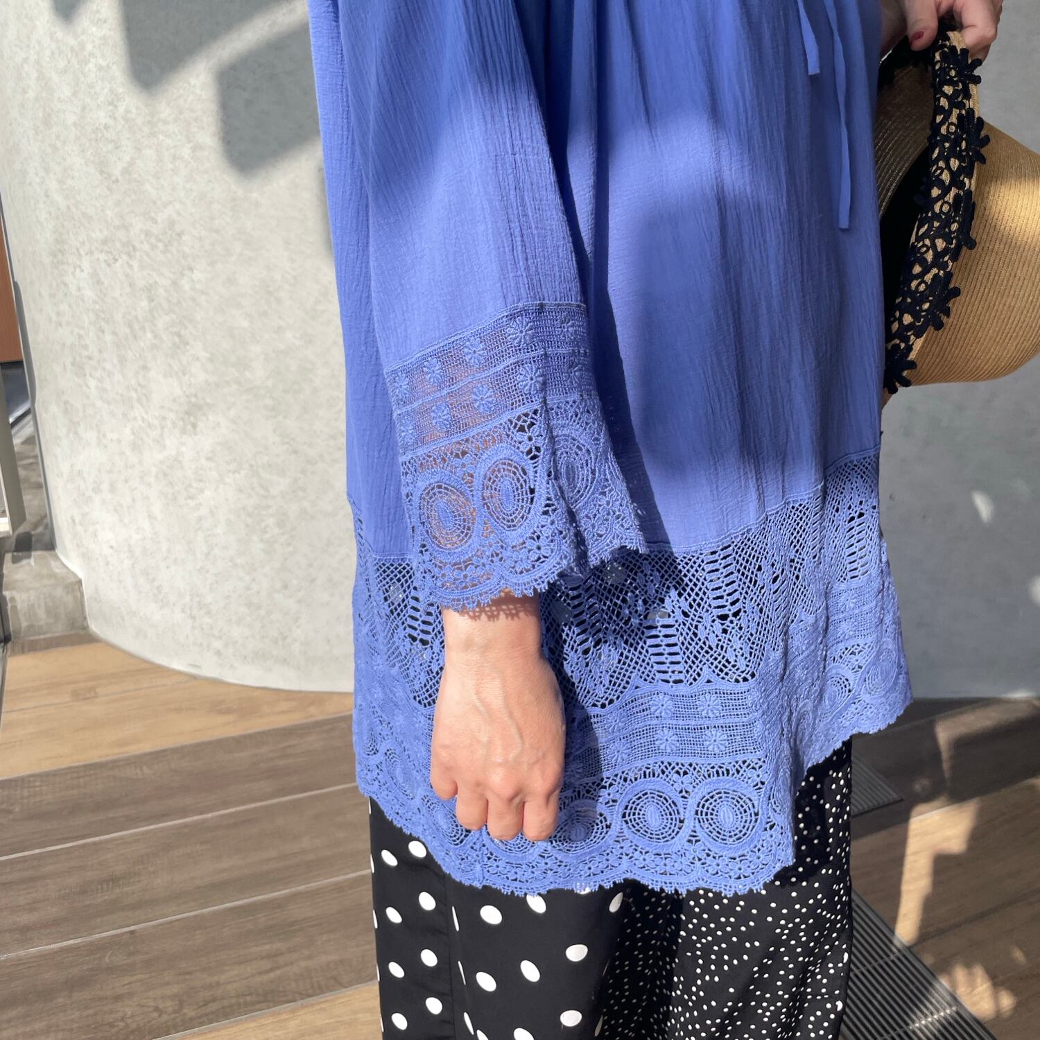 M~XXL◆超ゆったりで快適 レースが素敵なコットン100%チュニック ブルー【FREE】KMC-794 306908