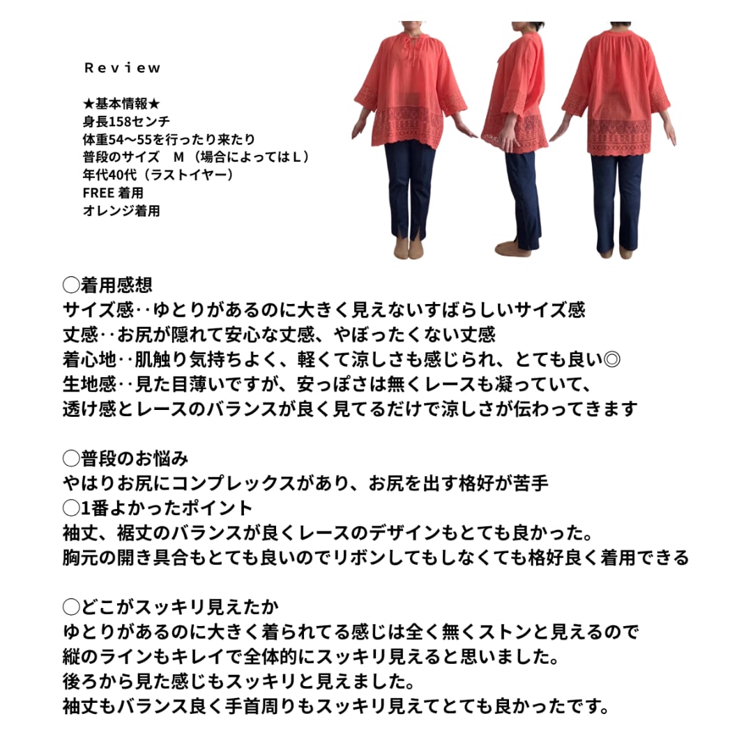 ■FREEサイズ⇒着丈75㎝・肩幅57㎝・袖丈34㎝・バスト132cm