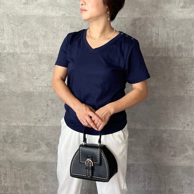 お顔周りがすっきりキレイに見えるVネックは、デコルテを美しく見せてくれます。