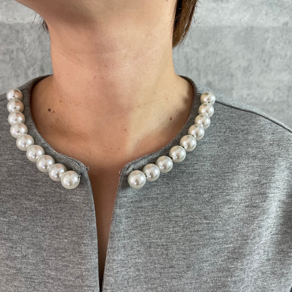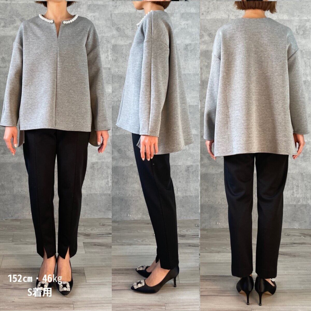 1つ1つ丁寧に並んだ大粒パールが、華やかで上品なシルエットトップスです。