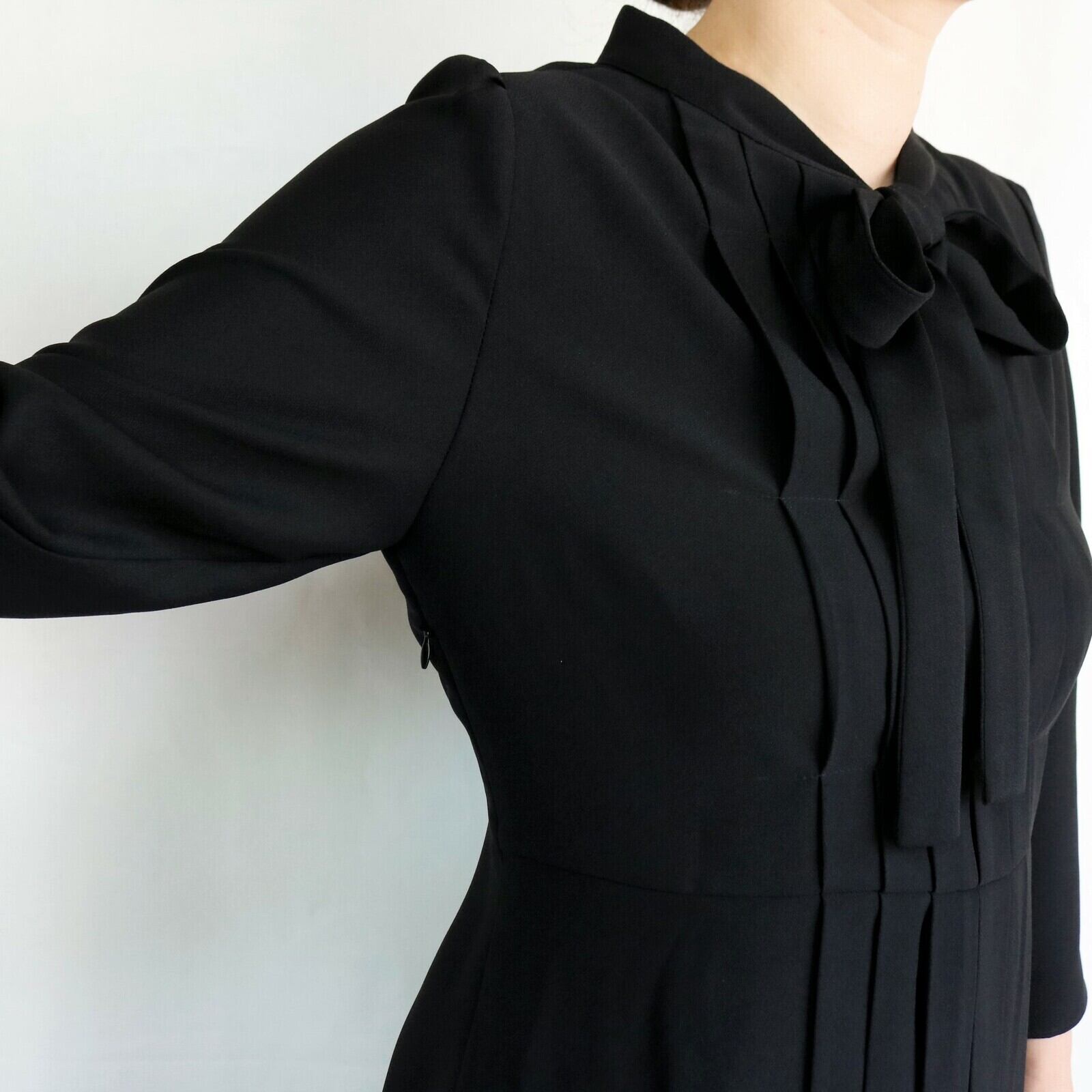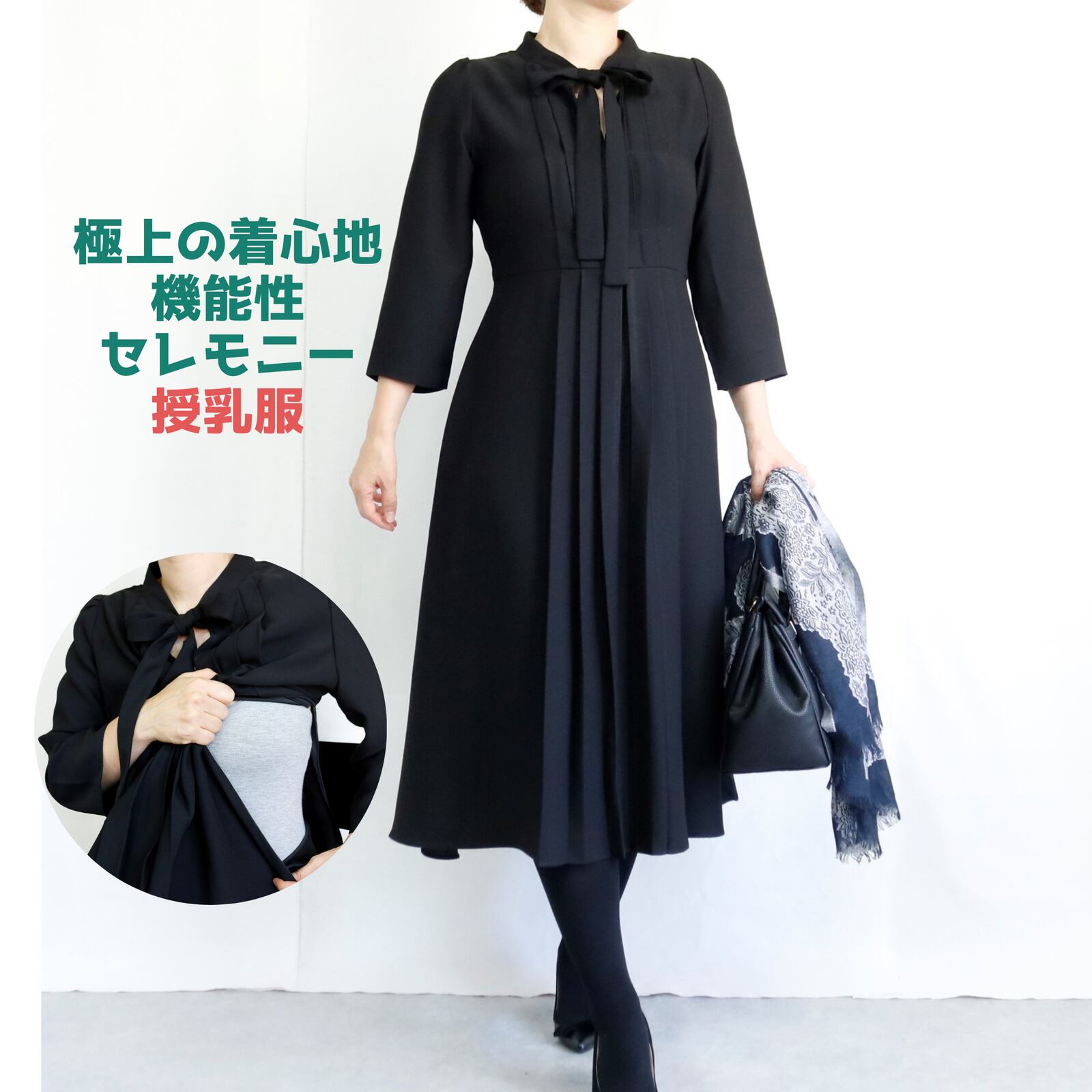 『授乳服・授乳口ワンピース』通年着用できるジョーゼット素材 プリーツ ボウタイ リボンワンピース 黒色【L:2size展開】フォーマル 七五三 卒業式 入学式 KMC-J1 655599 | keep my closet