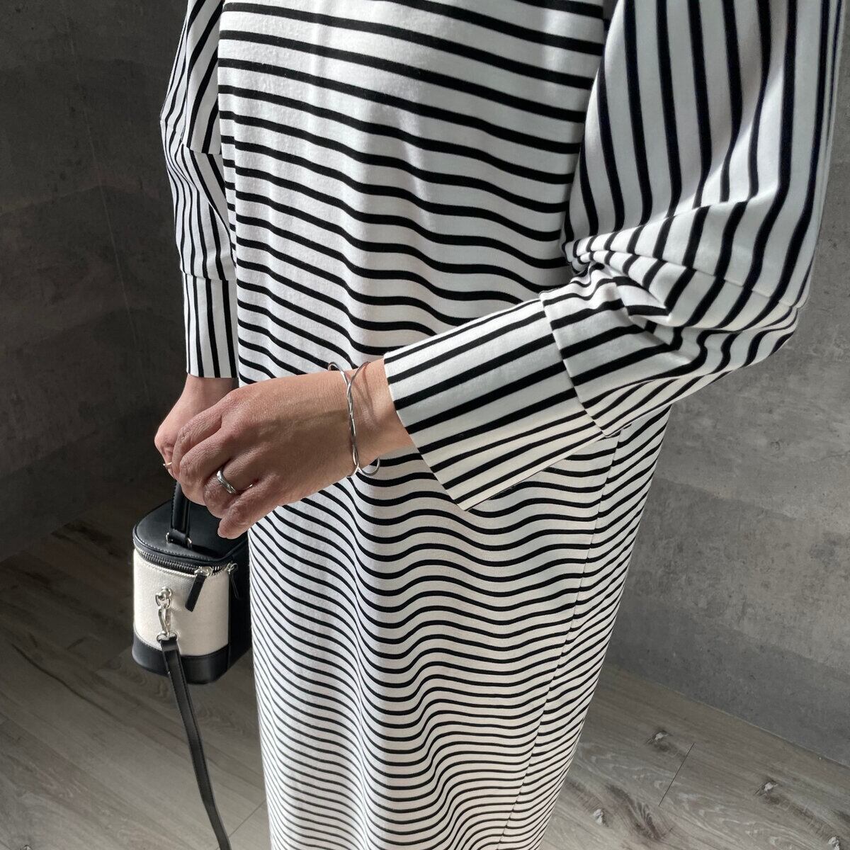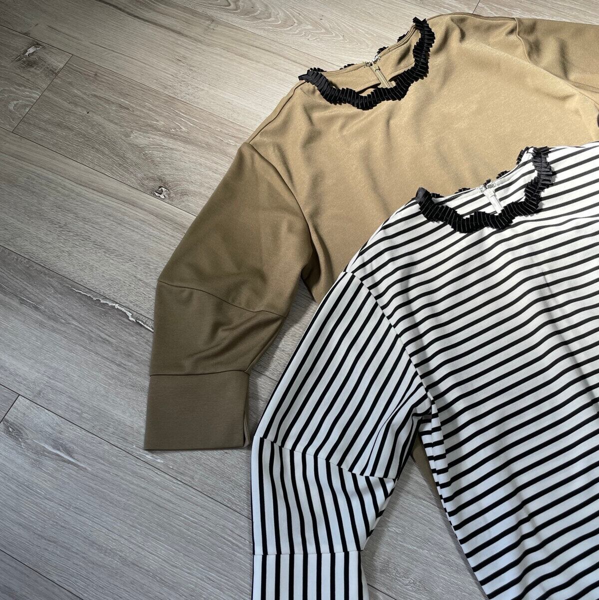 スリーブは3つの切り替えで立体的なフォルムに、ボーダーは袖のみストライプに♡