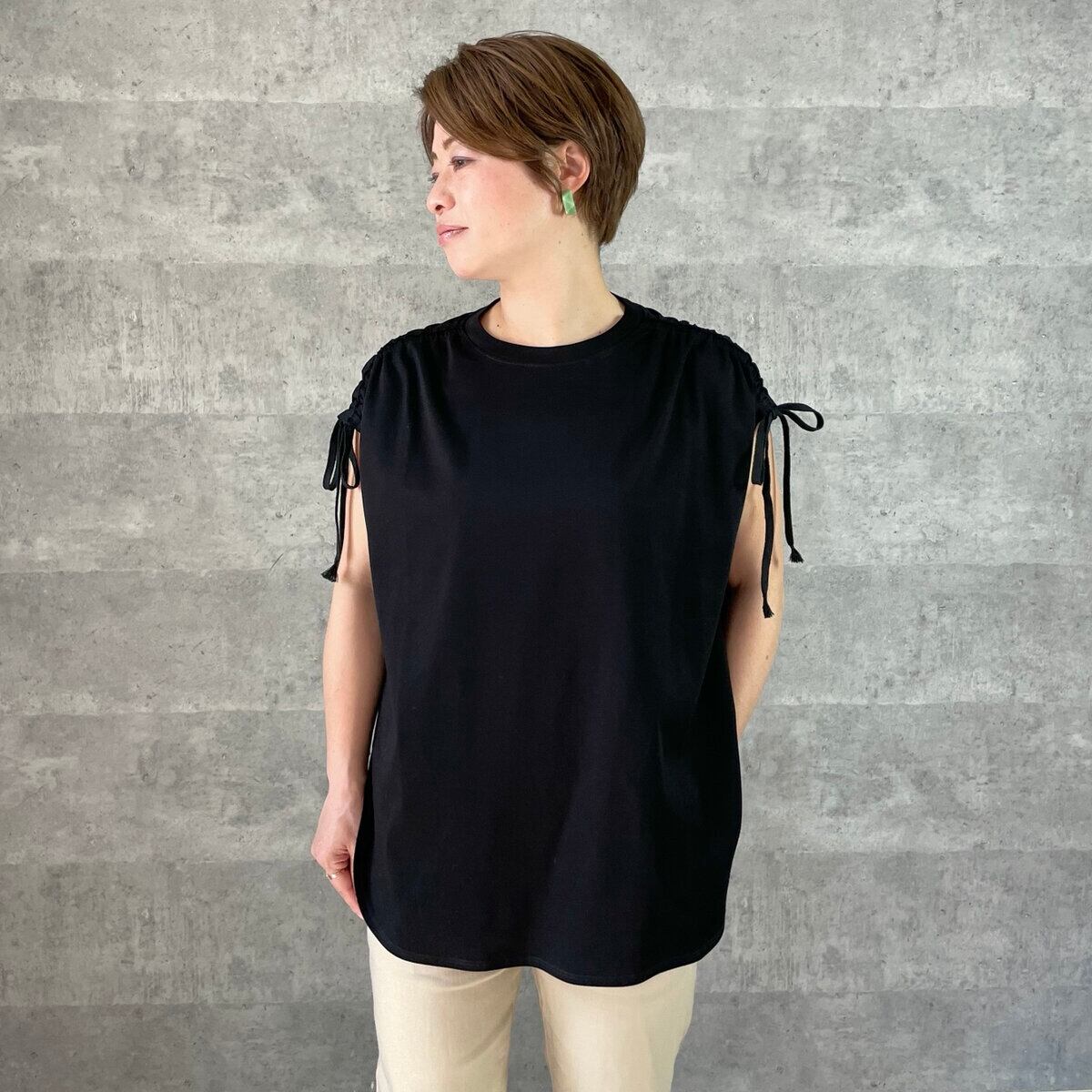 気になる二の腕は、リボンギャザーで袖の長さを調節できるので自分好みに調節可能な優れもの!