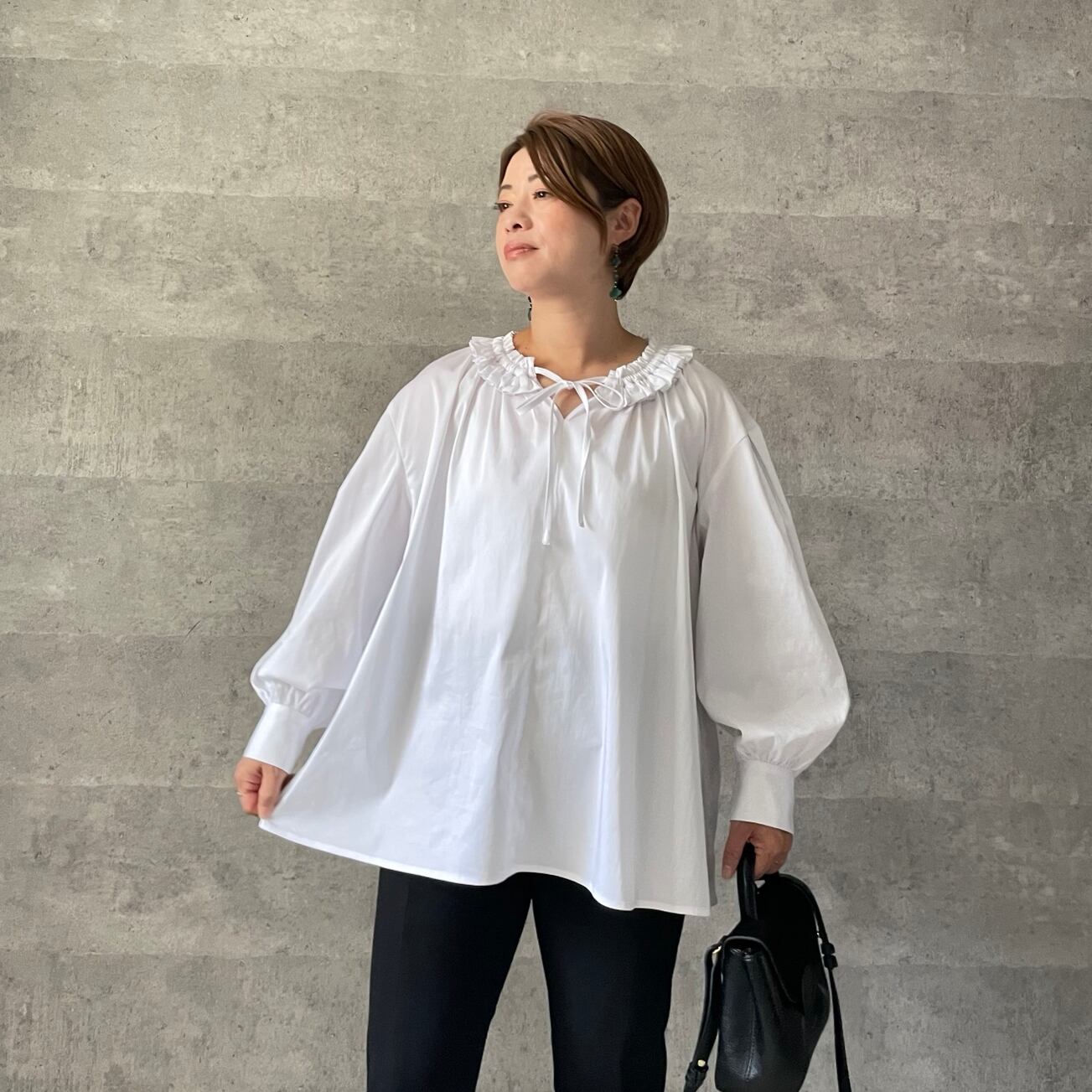 肩や背中の気になる部分は細かいギャザーやタックを入れることで、お肉を拾わず自然な落ち感を。
