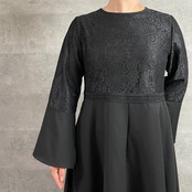 デザイン違いのレースを贅沢に使いました。2種類アンティークな花柄レースと切り替えには梯子レースの2種類レース使いで贅沢な仕上がりに