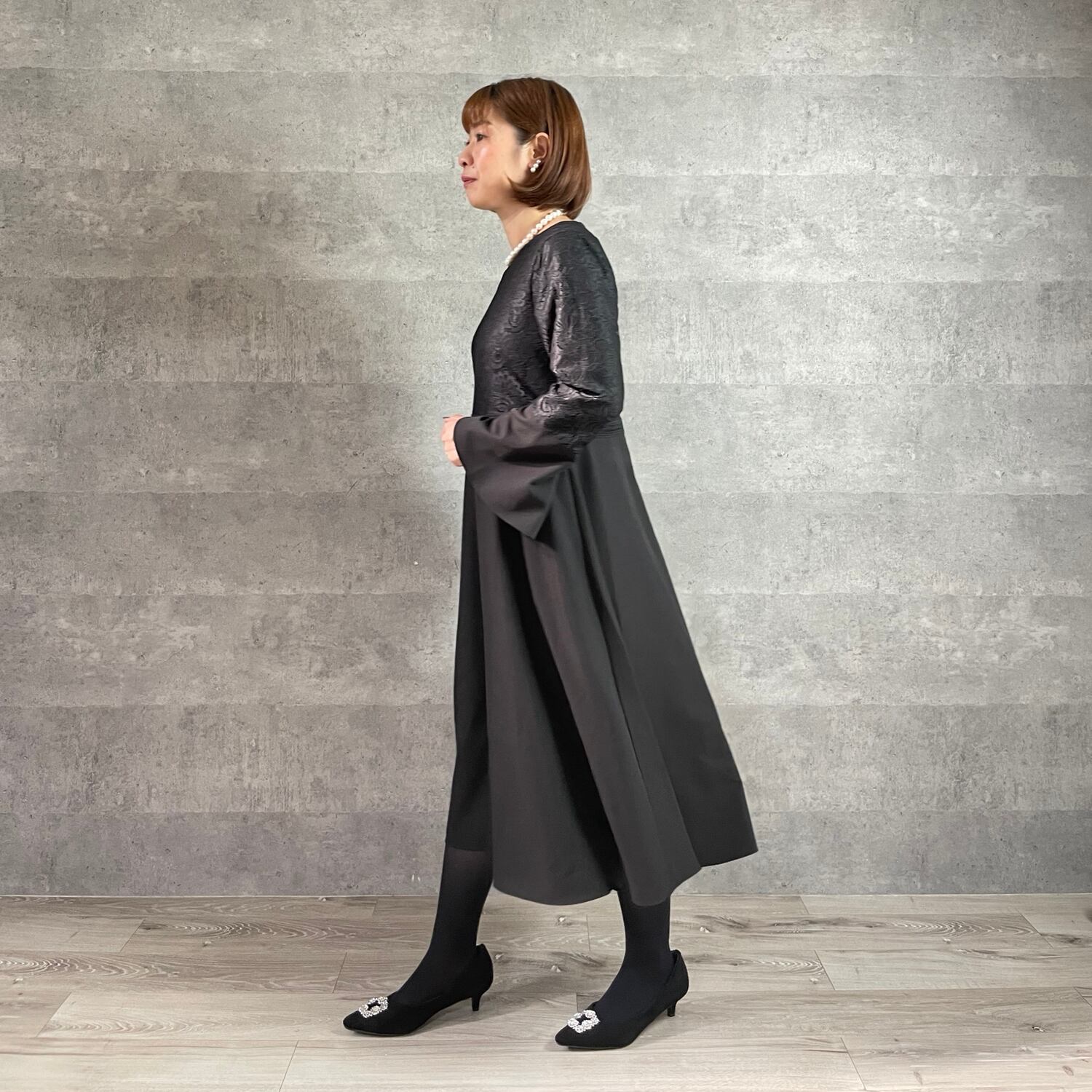 ■1枚で冠婚葬祭に対応できる上品ブラックワンピース
