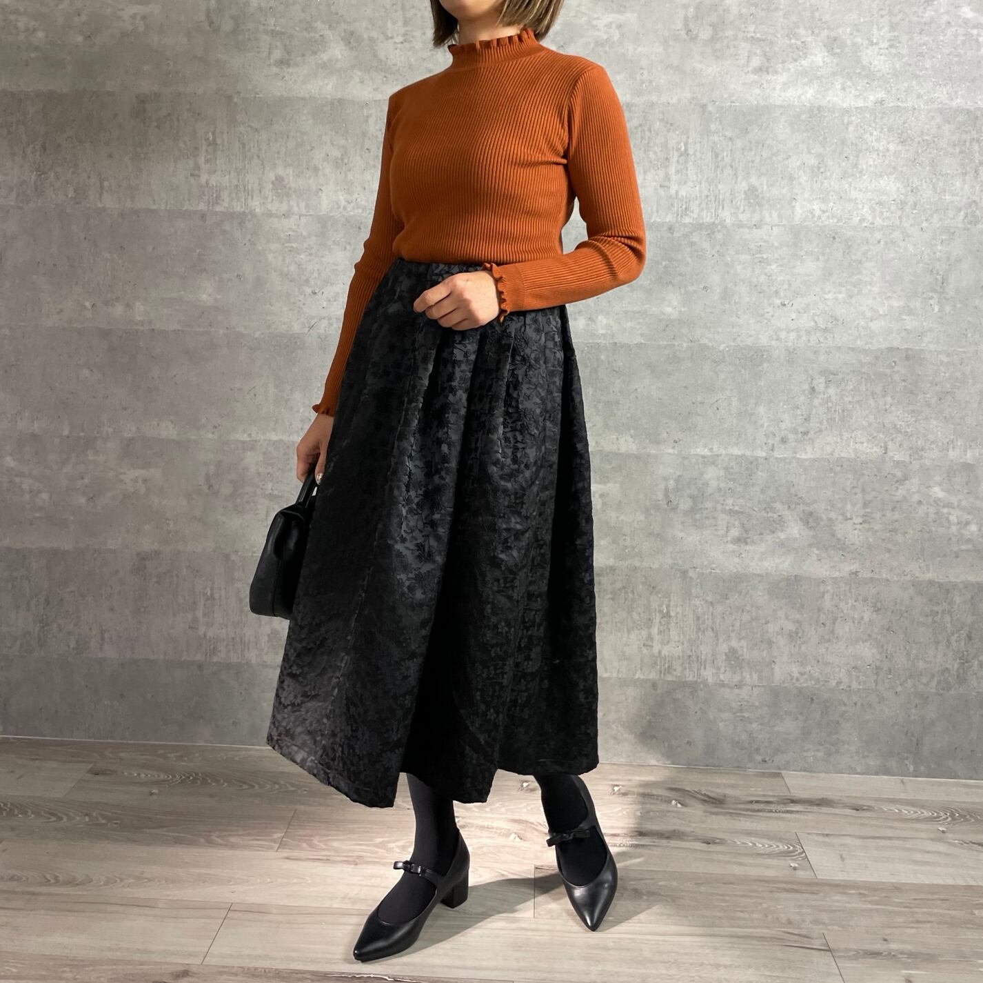 ネックの高さ・袖口や首周りフリル感、インしてもアウトしてもスッキリな着丈、