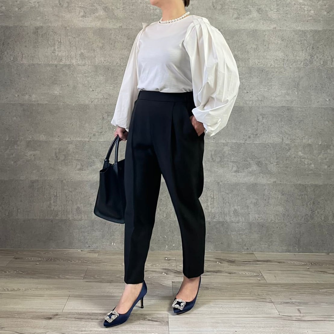 お腹周りがすっきり見えるタックテーパードシルエット、中央にはピンタックを入れ美脚効果も抜群!!