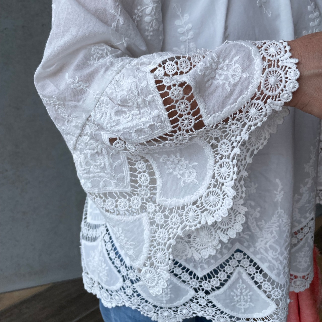 レースと刺繍、そしてギャザーをたっぷり入れた、どの角度からもすごく褒められる1枚に。