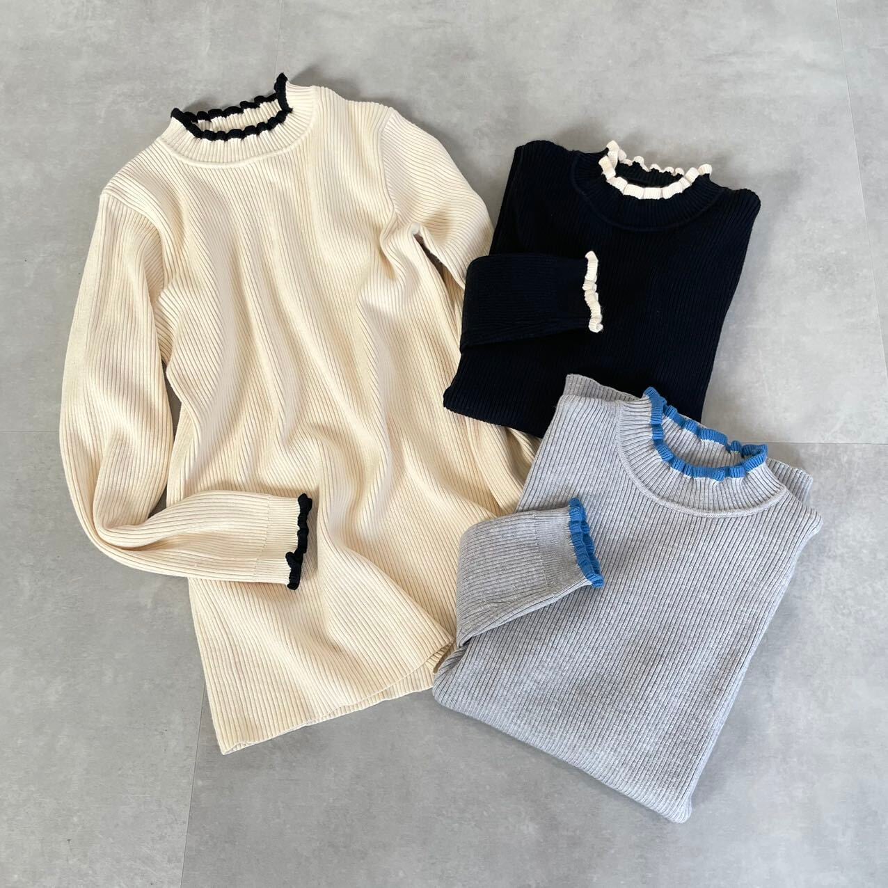 人気の温活ニットにポイントカラーが可愛い配色パターンが仲間入り♡