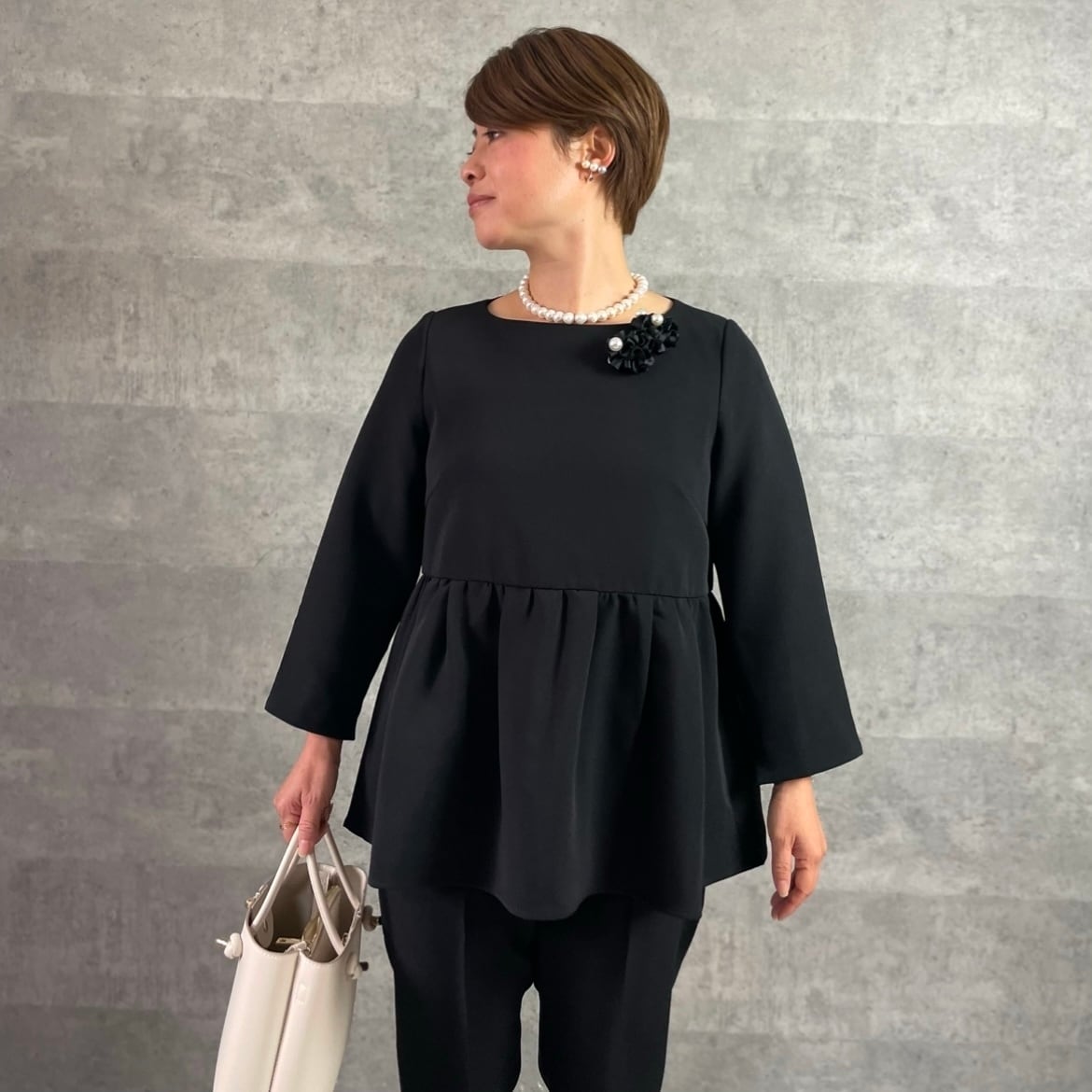 ■洗えて楽ちん♡普段~フォーマルまで上品なペプラムフレアトップス