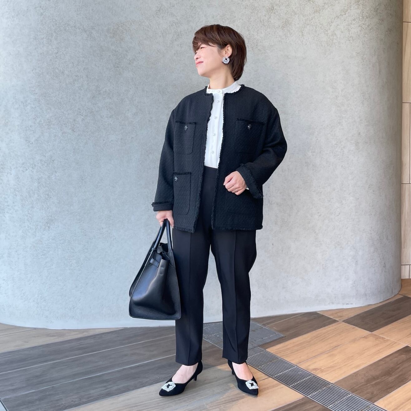 着回し大活躍のMIXブラック、上品でクラシカルなブラックはそれそれ違った印象に。